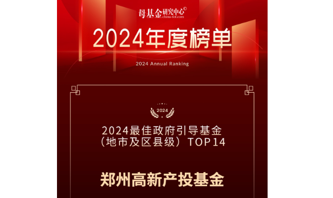 再获行业殊荣!郑州高新产投基金荣登“2024最佳政府引导基金(地市及区县级)TOP14”